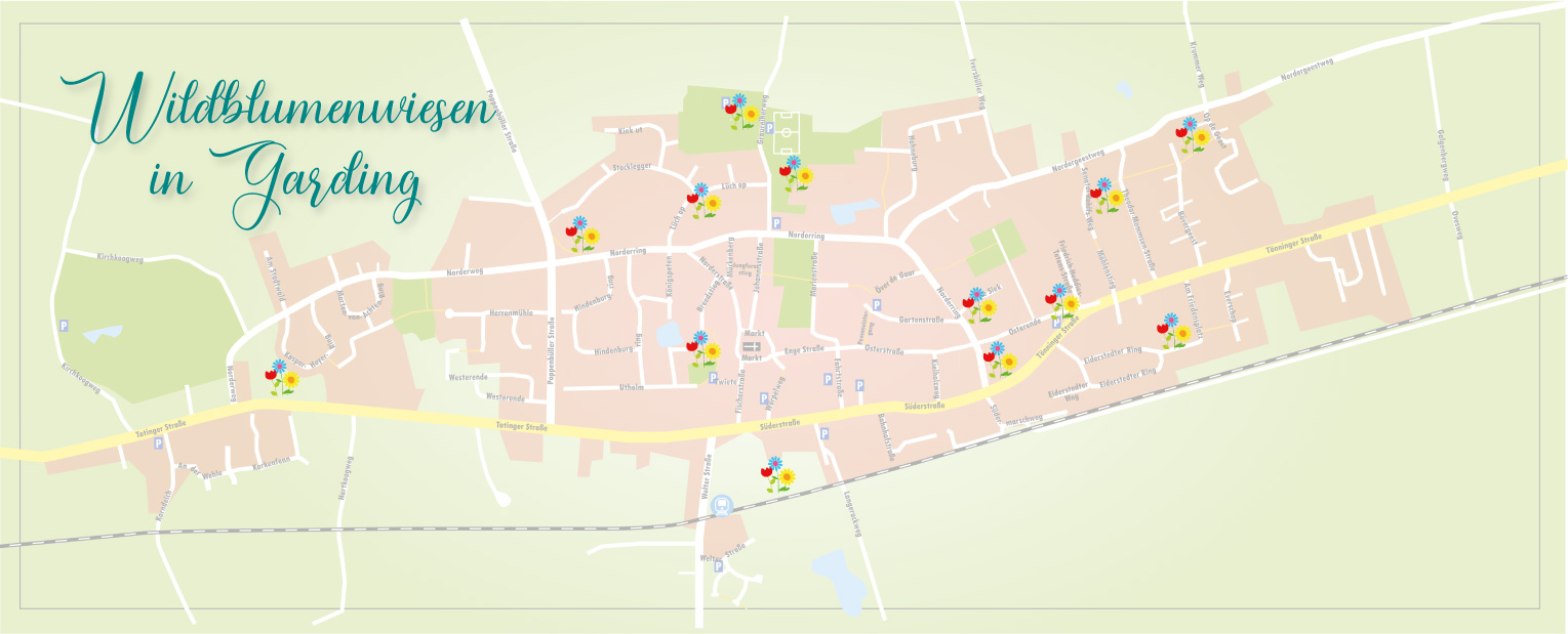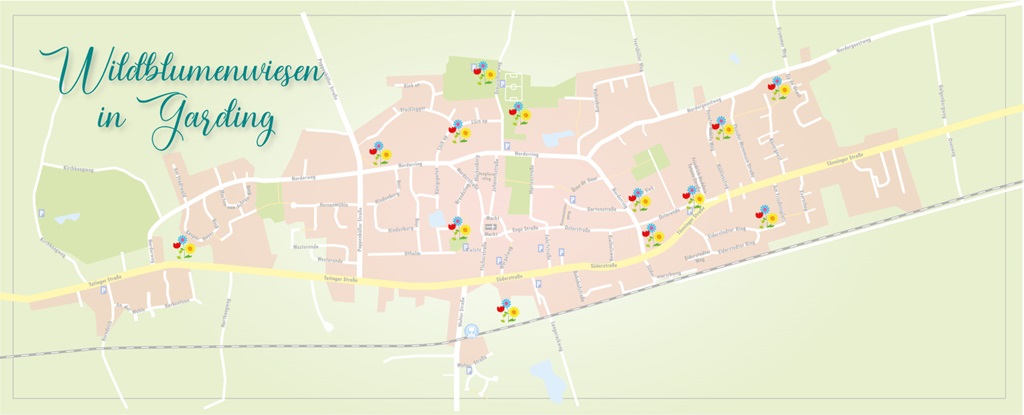 Die ersten 3 Blühflächen mit einer Gesamtgröße von 2500 qm wurden im Jahr 2019 durch die Stadt Garding im Zusammenhang mit der Aktion "Schleswig-Holstein blüht auf" erstellt.